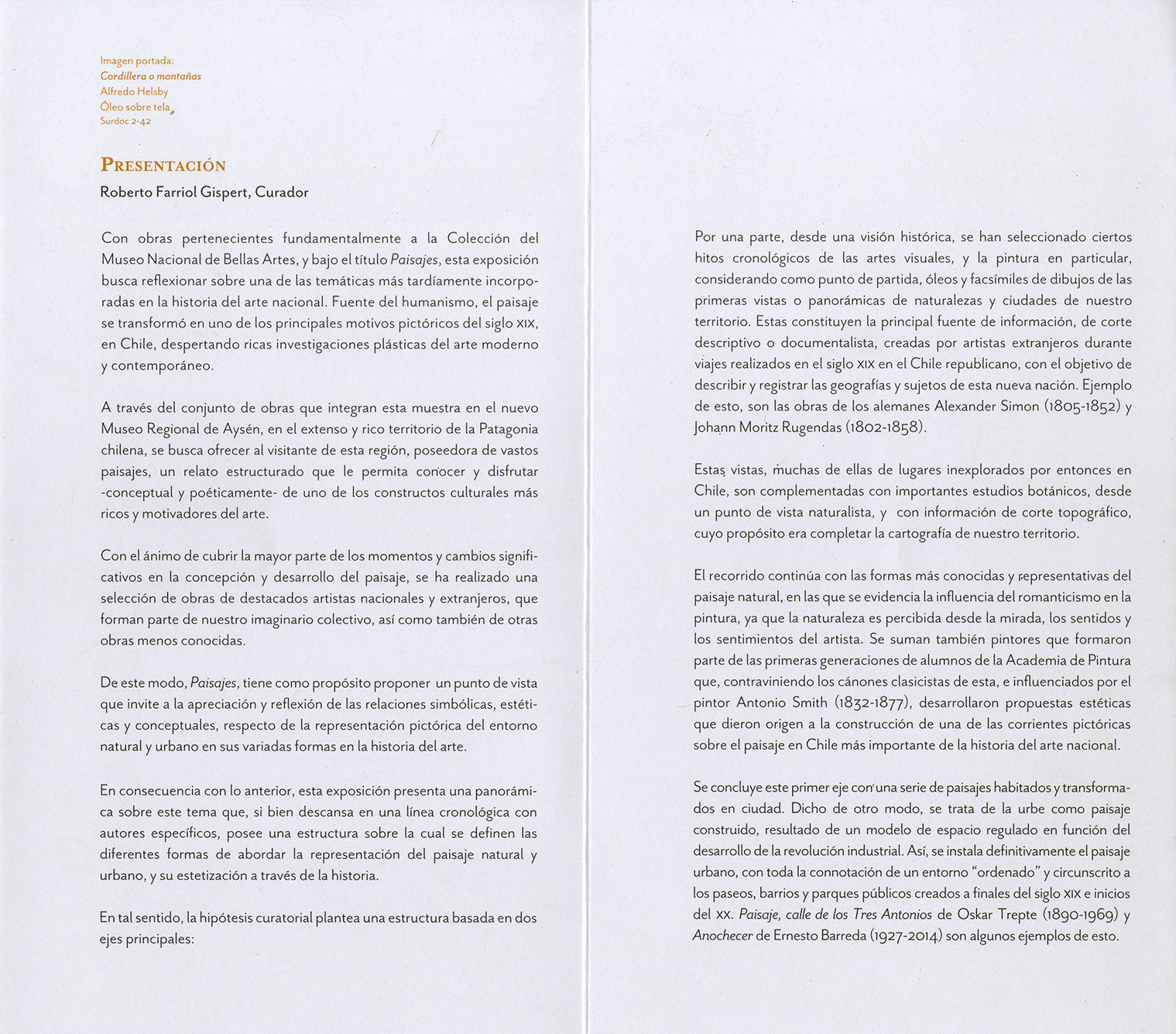 Paisajes, curaduría de una selección de obras pertenecientes a la colección del Museo Nacional de Bellas Artes, destinada a una muestra propuesta para su exhibición en el Museo Regional de Aysén.