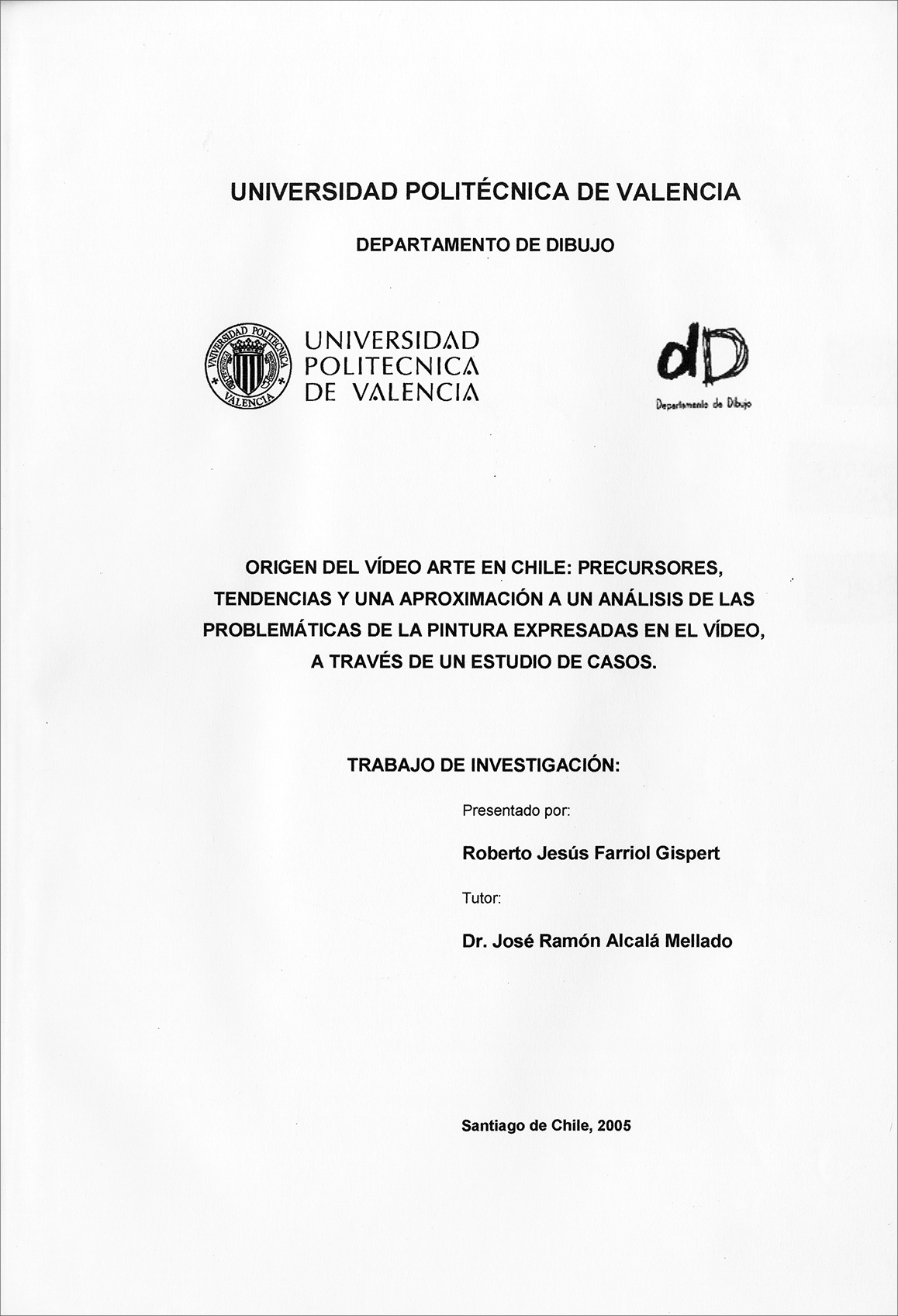 Origen del vídeo arte en Chile 2005 Diploma de Estudios Avanzados (D.E.A.). Universidad Politécnica de Valencia. 2005